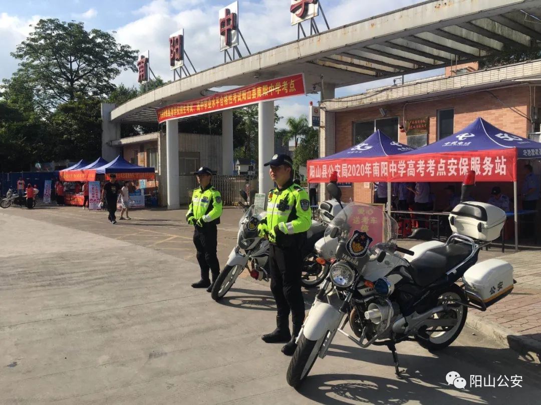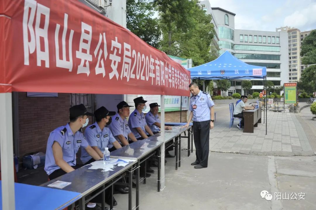 为确保2020年高考安全、有序进行,进一步落实“平安高考、公平高考、诚信高考、暖心高考、健康高考”目标,阳山县公安机关全警动员,全力以赴,提前谋划,周密部署,细化各项安保措施,狠抓各项责任落实,全力做好了各项高考安保工作,有力实现了“平安+满意”目标。
