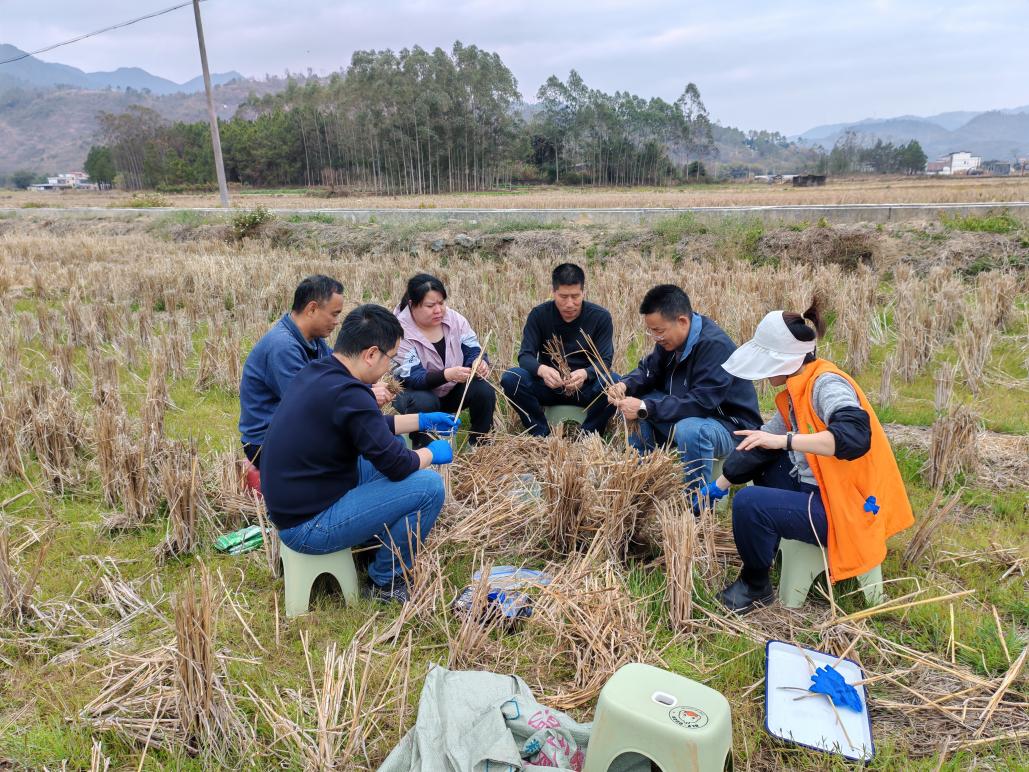 2026年2月4日,阳山县农业科技推广服务中心牵头组织,在七拱、太平等重点水稻种植区域开展2026年水稻病虫冬后基数调查工作。县农推中心主任李宇苗带领本中心植保技术骨干,联合广东省农业科学院植物保护研究所研究员肖汉祥、清远市农业科技推广服务中心副主任陆世忠等专家,深入田间地头,系统调查水稻大螟、二化螟等主要病虫害的越冬基数。