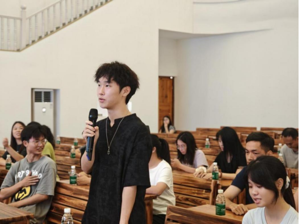 (大学生小曾在交流活动中分享学习情况及职业规划)