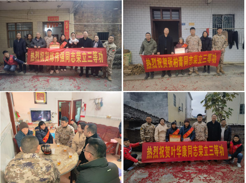 我县陈伟强、张柏青、叶华康、薛文杰、陈神围等5名立功战士,他们在部队精武强能、矢志强军,在各自岗位上恪尽职守、奋勇争先,以优异成绩荣立三等功。一份喜报,满载着祖国的肯定;一枚奖章,凝聚着全家的骄傲。这份喜报承载着军人的热血奉献,见证着军人对家国的忠诚守望,不仅为家庭增添了荣光,更激励着家乡子弟爱国拥军、报效国家的热忱。