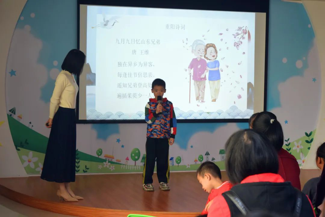 孩子们上台表演的朗朗诵读声让“重阳节”活动的气氛推向高潮,在场的老年朋友瞬间被这温暖的气氛浸润感染,喜笑颜开,让他们在欢声笑语中度过一个难忘的重阳节。