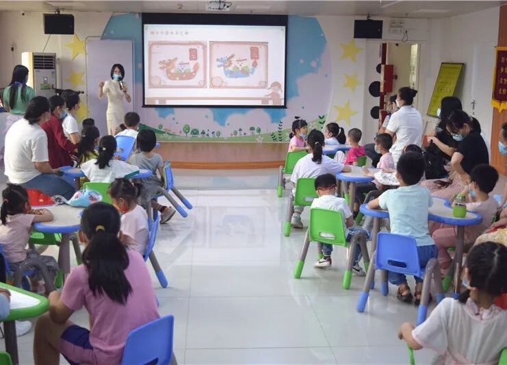孩子们认真聆听着道敏老师分享的绘本,了解了小艾在江南古镇度过端午节的故事。她由妈妈的想念引领着回到江南的故乡,经过亲身参与其中,她也慢慢爱上了古镇里的一切。平凡的人们用淳朴的方式来度过节日,小艾也感受到人们对传统节日的敬意,朋友、家人之间的情意,这一切都成了她最美好的童年记忆。