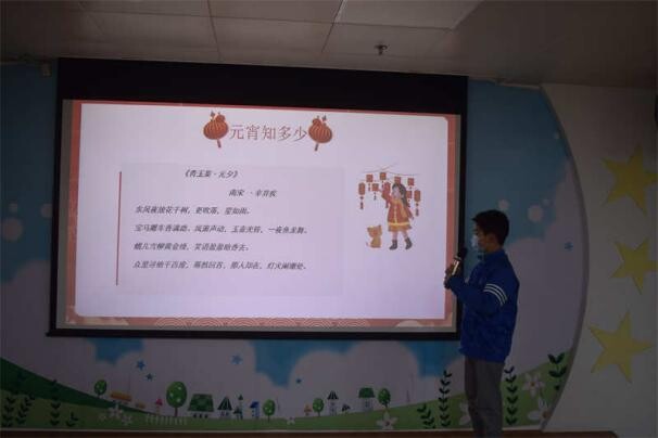 在活动现场,文化志愿者道敏老师不仅生动细致地讲解了关于元宵节的文化知识,还给小朋友们分享了两首词:辛弃疾的《青玉案·元夕》和欧阳修的《生查子·元夕》,这让参与者极大地加深了对于元宵节这一传统节日所蕴含的深厚文化背景的认知。各位小朋友也跃跃欲试,陆续发言,分享自己对元宵节的认识。