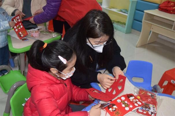 接着进行的是小朋友们最为期待的环节——手工灯笼制作,道敏老师拿起纸张开始示范灯笼的制作过程,并讲解制作要点。小朋友们看得津津有味,随后便在志愿者和家长的帮助下,亲自动手进行手工灯笼的制作。不过,看事容易做事难,在实际操作中,小小的灯笼还是需要有足够的耐心和一定的巧手才能完成。