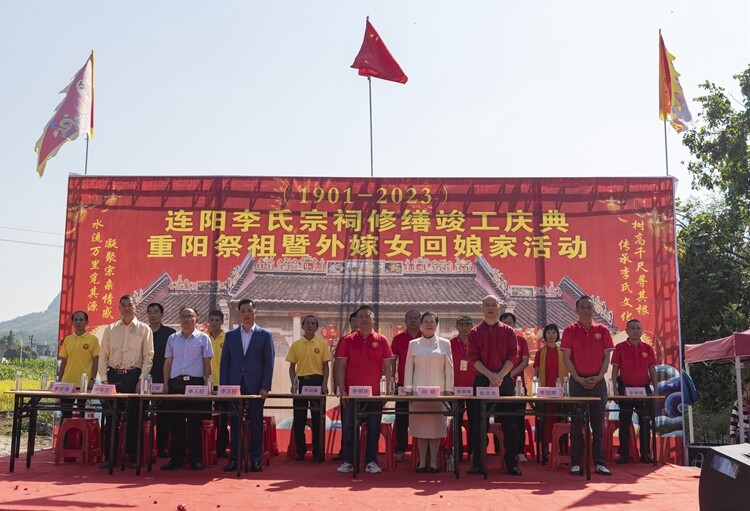 连阳李氏宗祠是阳山县文物保护单位,李氏宗亲乡贤大力为修缮宗祠捐资赞助,令连阳李氏宗祠重焕新颜。2023年10月23日,隆重举办“连阳李氏宗祠修缮竣工庆典——重阳祭祖暨外嫁女回娘家活动”,福建上杭李氏大宗祠、湖南贺州市桂粤湘李氏总会、清远李氏宗亲总会、阳山县文化广电旅游体育局领导等嘉宾现场参加了庆典仪式。