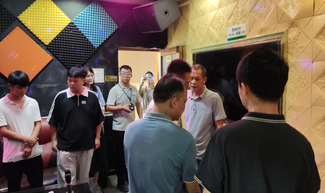 在对黎埠镇部分经营场所进行突击检查时,检查组重点检查了经营场所是否存在无证经营、噪音扰民、播放违禁歌曲的情况,是否存在接待未成年人、不严格落实营业制度等违法违规经营行为,并要求经营单位对存在问题立行立改。另外,我局执法人员还详细听取了黎埠镇执法办开展文化市场执法情况的工作汇报,就文化执法工作难点及问题等方面进行了交流,要求黎埠镇执法办要依照法律法规查处相关违法违规行为,并就具体的执法事项开展了现场指导。