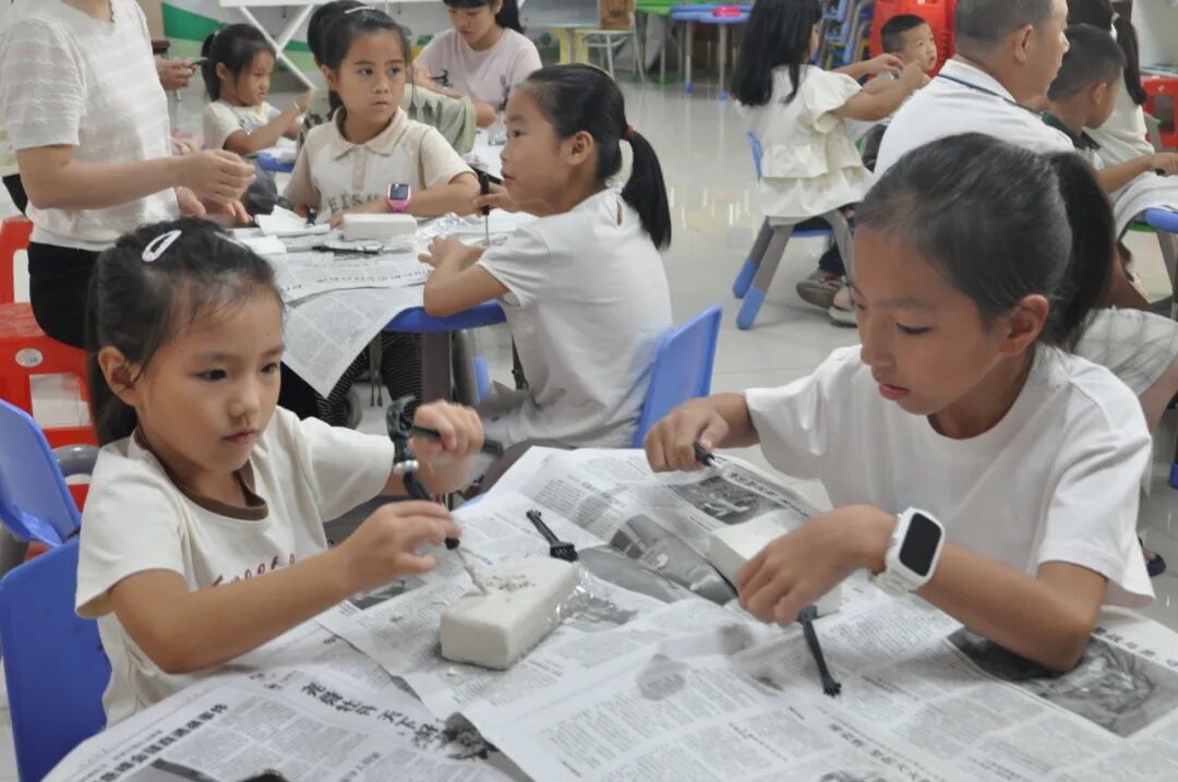 活动现场为每个家庭准备了兵马俑的手工材料。孩子们化身 “小小考古学家”,体验真实考古的严谨与乐趣:先用竹签轻轻凿开石膏表面的 “覆土”,遇到坚硬处可适量加水降低难度,避免损坏内部的 “陶俑”;再用刷子细细清扫掉落的土块,看着 “陶俑” 的轮廓一点点显露;最后彻底清理残留粉尘,一件亲手挖掘的 “兵马俑” 就完整呈现。这份 “考古成果” 既能摆在家中当装饰,也能送给亲友,让千年秦韵成为身边的纪念。