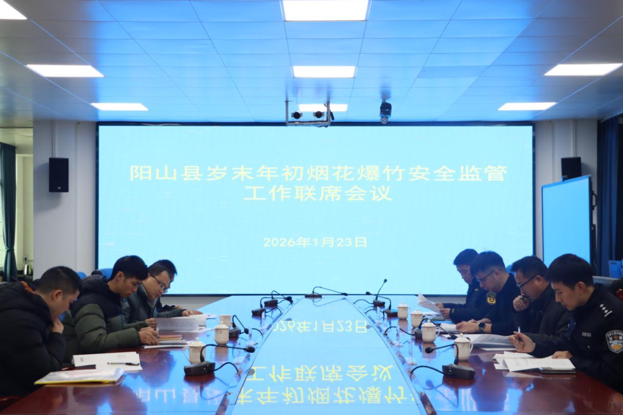 为筑牢岁末年初烟花爆竹安全防线,有效防范化解安全风险隐患,坚决遏制重特大安全事故发生。2026年1月23日,阳山县召开岁末年初烟花爆竹安全监管工作联席会议。县应急管理局、县公安局、县交通运输局、县市场监督管理局、县供销社和辖区内烟花爆竹批发经营企业参加会议。