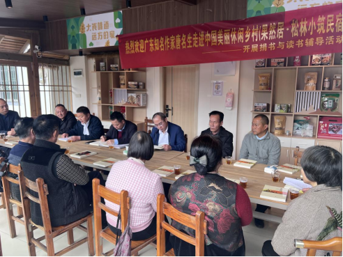 为深入推进“百千万工程”落地见效,夯实乡村振兴的人才基础与文化根基,2025年12月23日,阳山县大崀镇乡村振兴人才驿站协同镇政府、黄埔区驻大崀镇工作队等单位,在松林村果然居·松林小筑民宿成功举办捐书与读书辅导活动座谈会。活动特别邀请广东知名作家唐名生、段志明、李曼苟、陈汝元等嘉宾莅临指导,阳山县人力资源和社会保障局局长戴苏平、大崀镇镇长严海斌、黄埔区驻大崀镇工作队队长陈亚富、镇人才驿站负责人、以及松林村“两委”干部、退休老同志、读书爱好者等共同参与。活动以书香为媒搭建人才交流平台,为乡村振兴注入强劲精神动能。