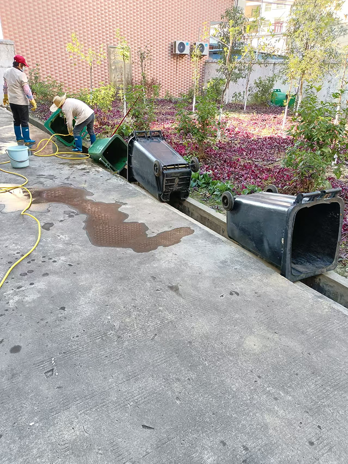2024年12月23日,县公租房小区物业工作人员对小区公共设施进行全面清洗。
