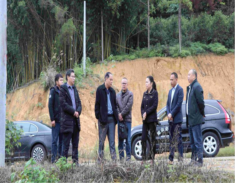 在岭背镇曹田坑沙田柚种植基地,调研组听取基地负责人介绍基地近期的发展情况与下一步计划。基地目前种植沙田柚700多亩,项目总投资约1200万,引用广西容县优质沙田柚种苗,全场采用自动喷淋系统种植技术。近年来已带动当地周边劳动力100户参与种植沙田柚,从而提高了经济效益和社会效益。下一步致力于打造岭背镇旅游观光、休闲度假千亩沙田柚示范基地。
