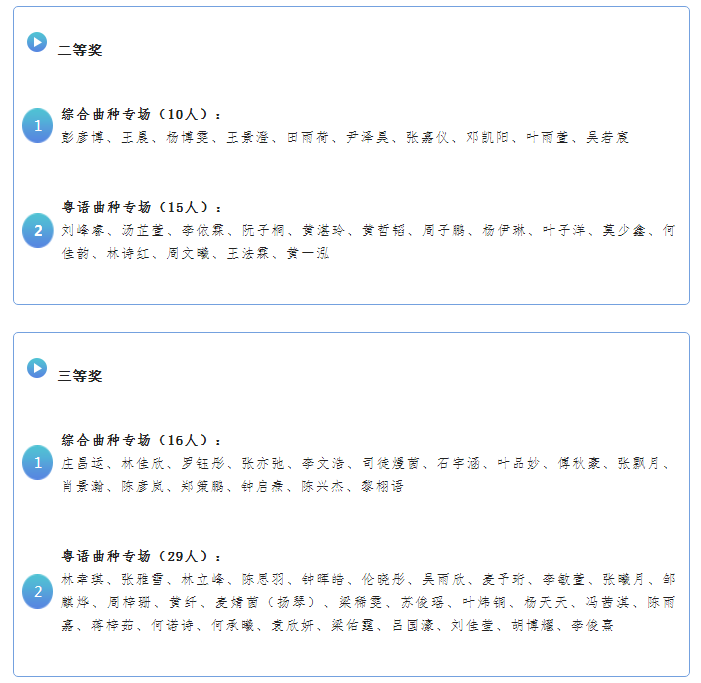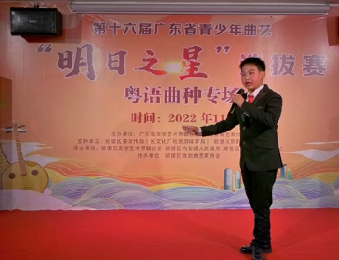 近日,第十六届广东省青少年曲艺“明日之星”选拔赛综合曲种专场、粤语曲种专场线上评选结果揭晓。本届选拔赛共收到粤曲、粤语相声、粤语讲古、评书、快板、相声、雷曲、开平卖鸡调、器乐演奏等曲艺作品166件,共有246名选手参加比赛。经过省专家评审组选拔产生新一届“明日之星”一等奖17名、二等奖25名、三等奖45名获得者,其中我县黄法霖演唱的粤曲《伶仃洋上咏长桥》荣获粤语曲种专场二等奖。