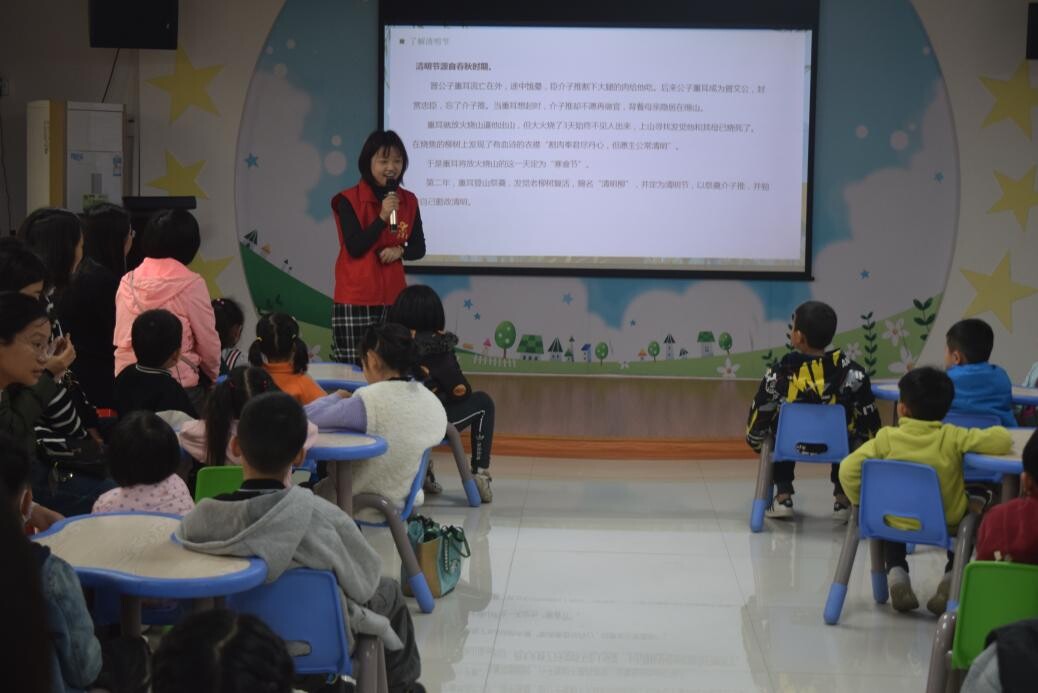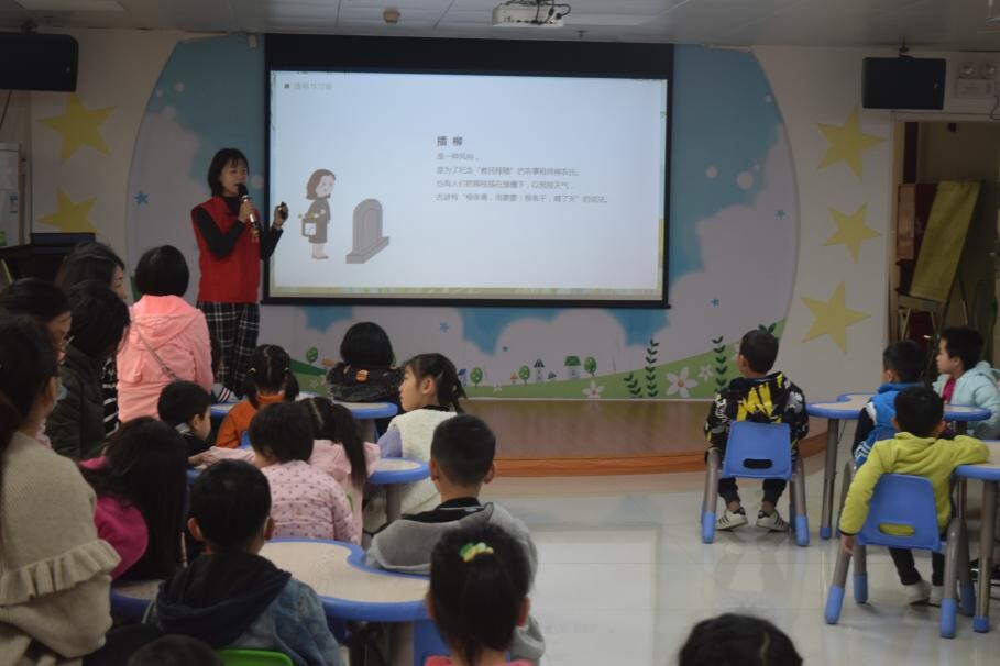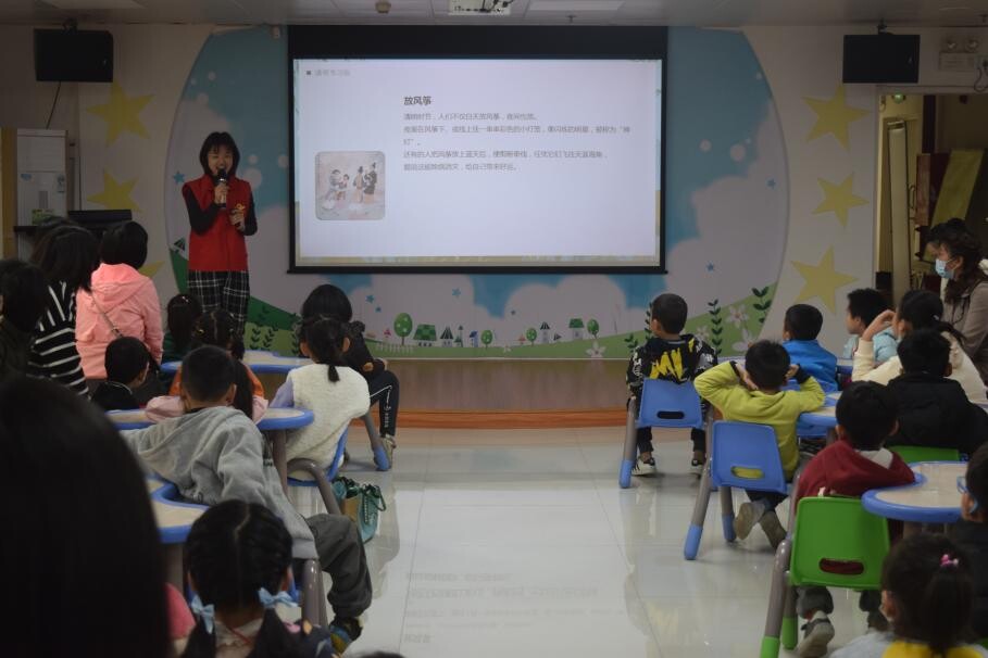 活动初始,阳图文化志愿者君君老师为各位小朋友介绍中国传统节日清明节的由来和民俗文化,让小读者们了解到了清明有扫墓、踏青、荡秋千、蹴鞠、植树、放风筝、插柳等文化习俗。