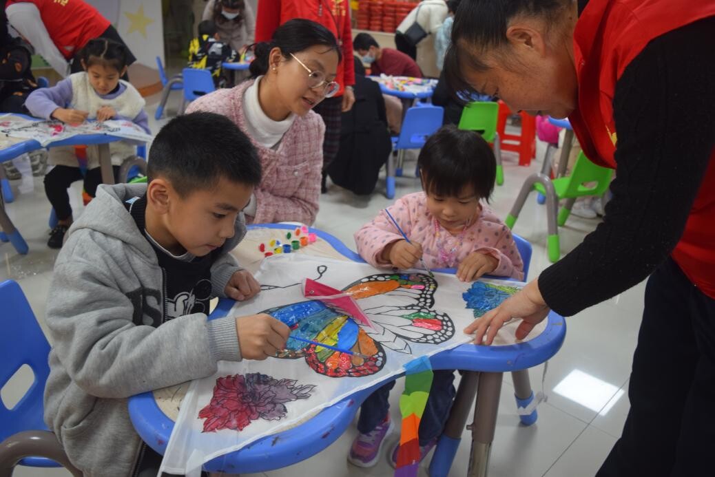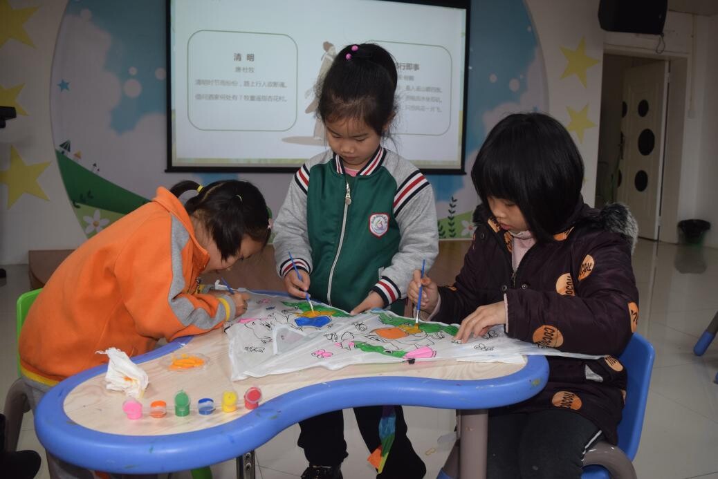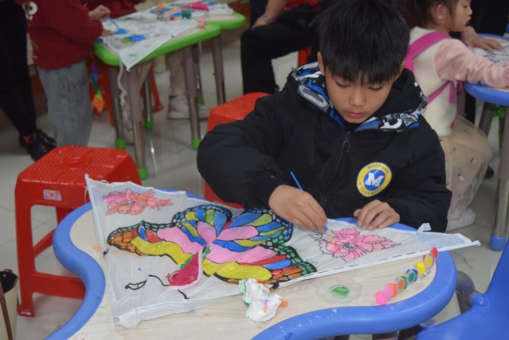 风筝,距今已有2000余年的历史。古代北方,为了怀念逝去的亲友,清明节前后有放风筝的民俗习惯。为了让读者们体验清明节放风筝的民俗文化,进行了亲子DIY风筝环节。小朋友们用手中的画笔,进行构思调色,涂鸦出一个个色彩斑斓又独具特色的风筝。