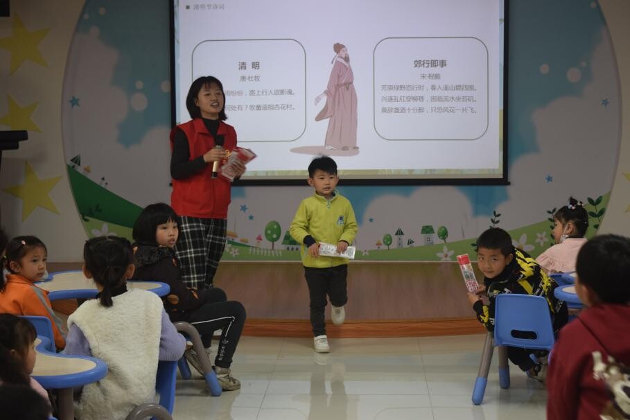 结合清明节特点和文化内涵,小读者们踊跃举手上台诵读与清明节相关的古诗词。一首首慷慨诗篇,让大家在重温经典中传承中华传统优秀文化,体悟先烈初心,祭奠革命先烈,学习革命精神。诵读过后每位小朋友都领到了志愿者老师送来的小奖品。