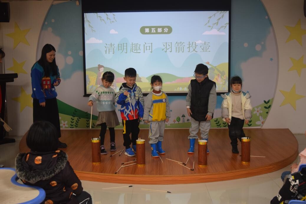 随后,还进行了清明节另一民俗活动——羽箭投壶。读者们领取羽箭投掷,体验投壶竞技之乐。有些小读者使出十八般武艺,将羽箭插入壶中,几乎百发百中!令台下观众们拍手叫绝,赢得现场一片喝彩掌声。