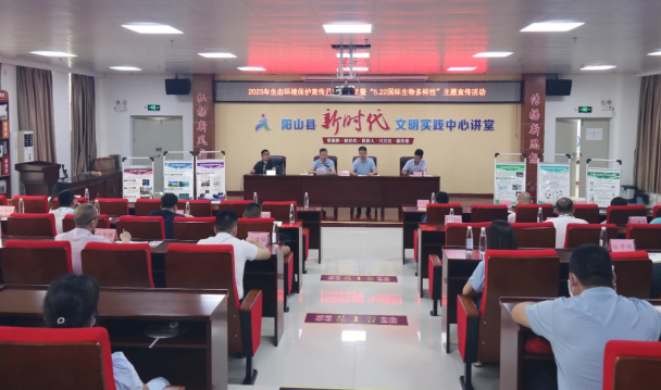 为进一步扩大生物多样性保护宣传的覆盖面和影响力,增强公众生物多样性保护意识,形成共同参与氛围,2023年5月22日,清远市生态环境局阳山分局联合县林业局、广东南岭国家级自然保护区管理局等多部门在阳山县新时代文明实践中心开展2023年生态环境保护宣传月启动仪式暨“5.22”国际生物多样性主题宣传活动。