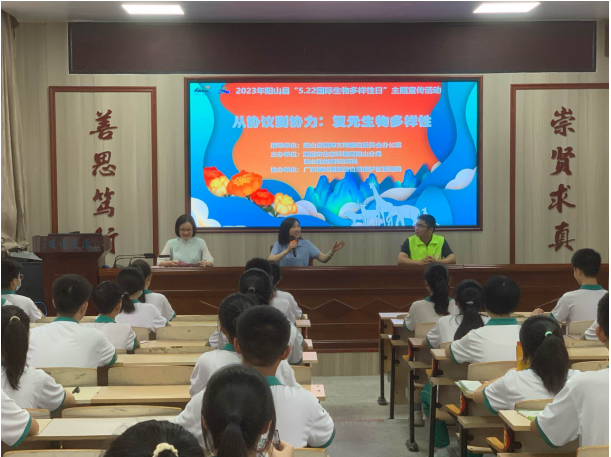 当天,2023年“国际生物多样性日”宣讲——环境保护志愿者活动还走进了韩愈中学,为学生讲解普及生物多样性的概念以及鸟类保护的知识,增强学生生物多样性的保护意识。