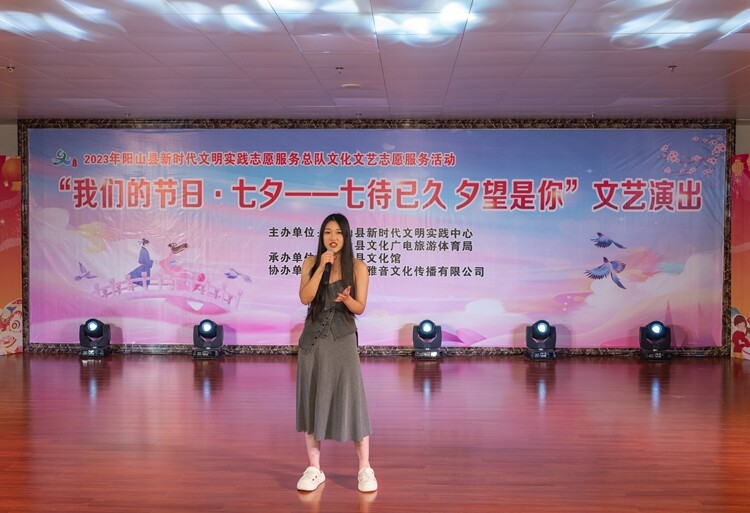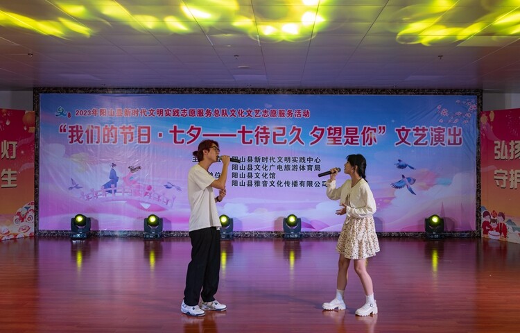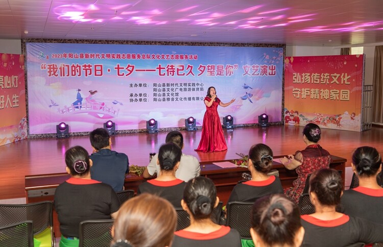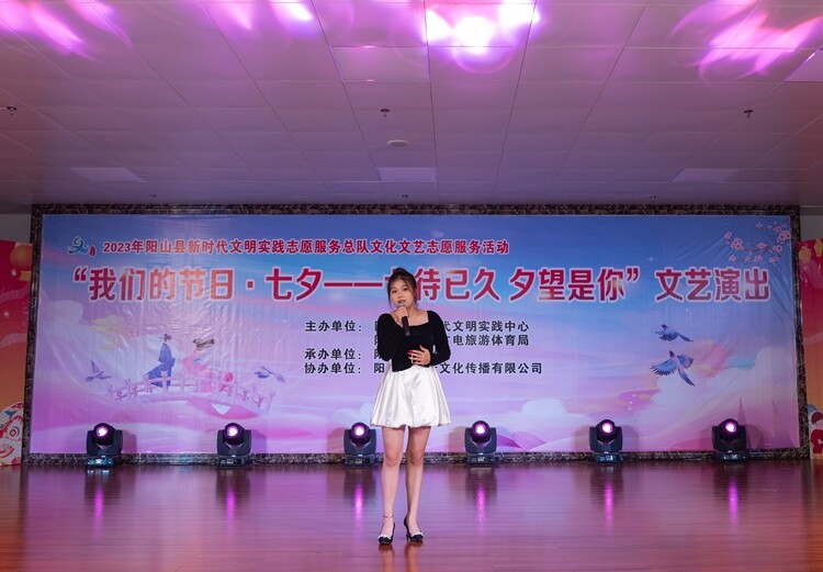 为了弘扬中华优秀传统文化,充分发掘和展现节日文化内涵和时代特色,引导广大群众了解中华悠久历史、传承优良传统,丰富和活跃广大市民的节日文化生活,2023年8月22日下午,由阳山县新时代文明实践中心和阳山县文化广电旅游体育局联合主办、阳山县文化馆承办的“我们的节日·七夕——七待已久 夕望是你”文艺演出,在阳山县文化馆小剧场隆重举行。