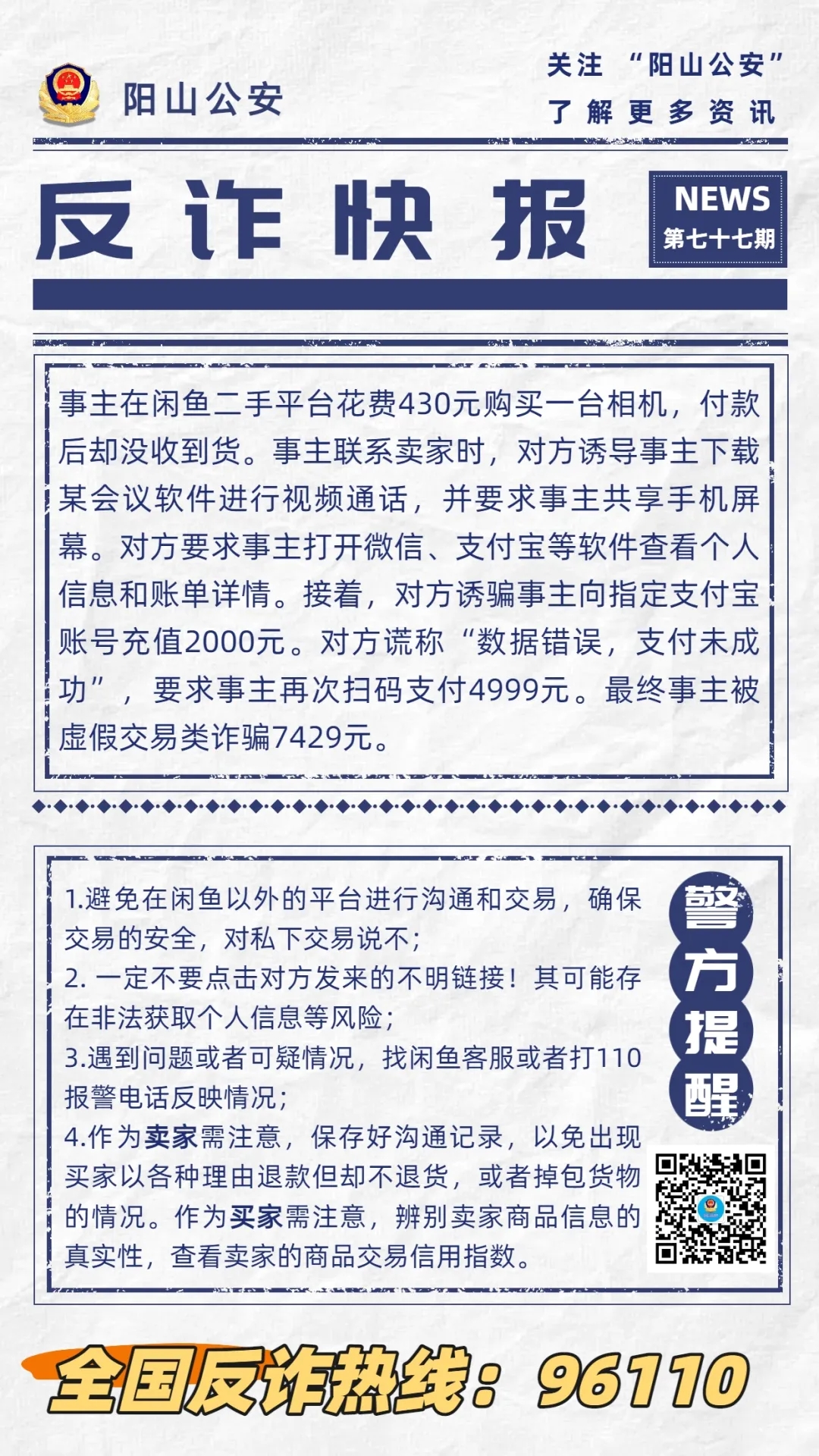 【反诈快报77期】网上买相机却遭“屏幕共享”诈骗!