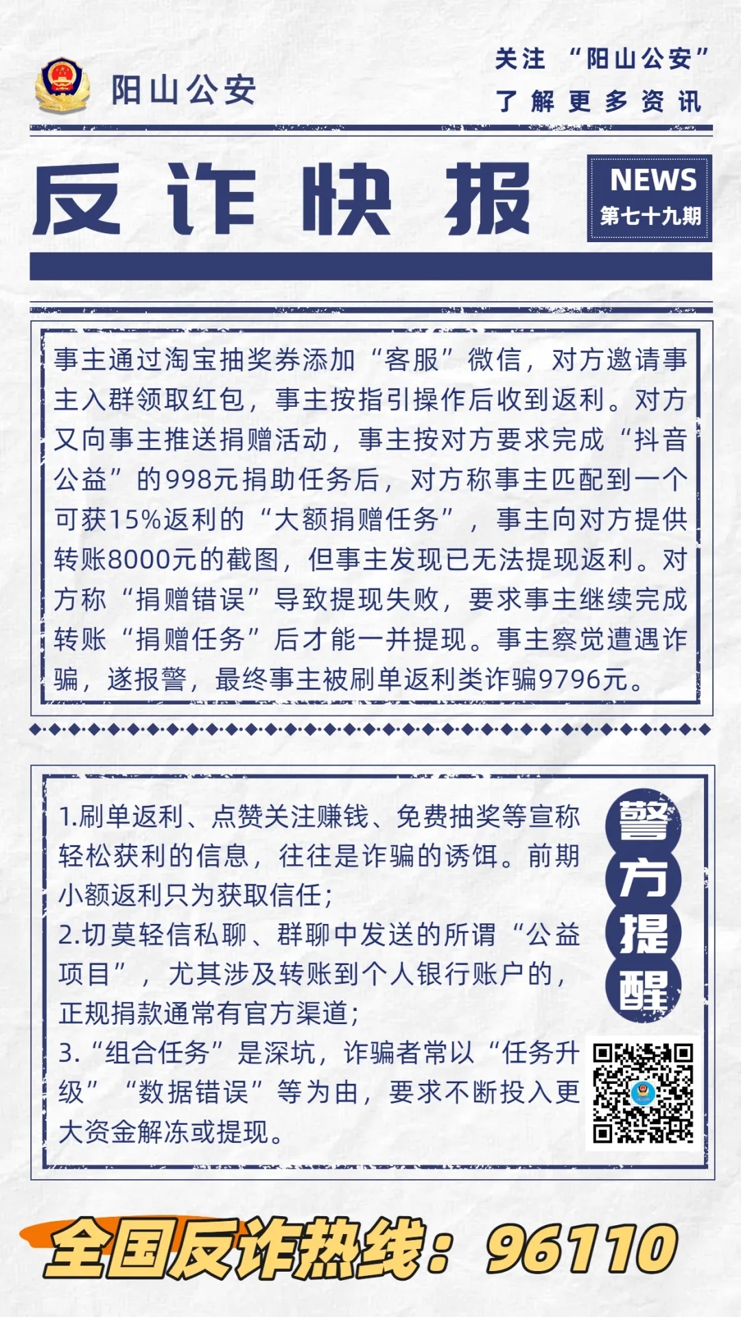 【反诈快报79期】“公益活动”设陷阱 刷单返利是诈骗!