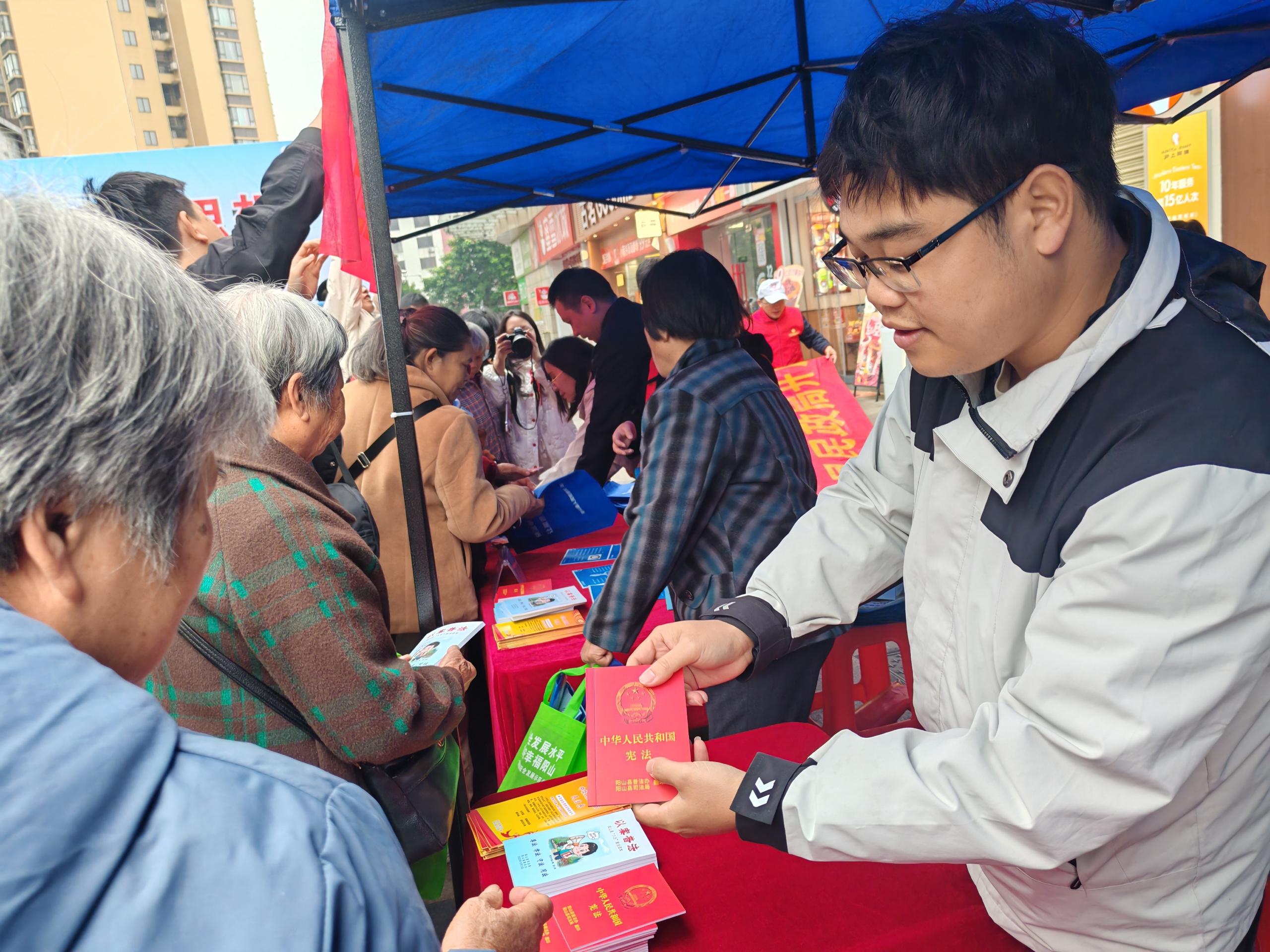 (工作人员向市民宣传国家宪法相关知识)