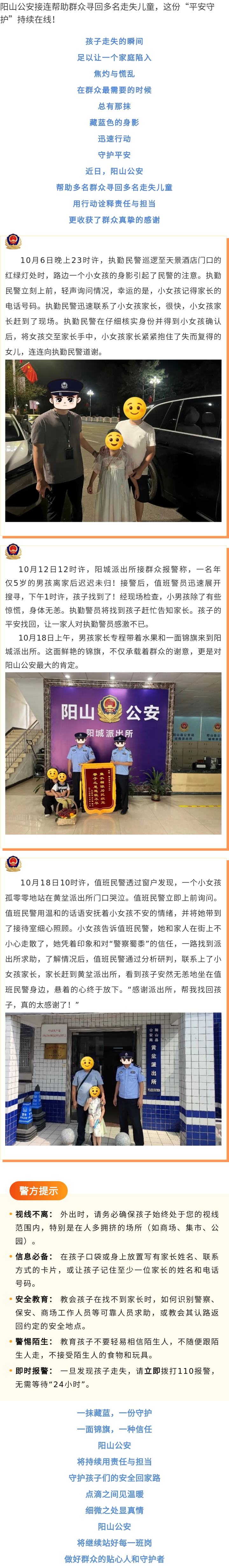 阳山公安接连帮助群众寻回多名走失儿童,这份“平安守护”持续在线!