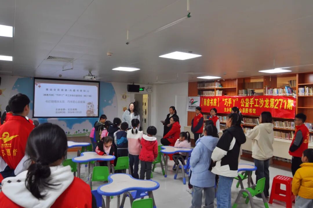 告别2025,迎接2026。元旦的到来,象征着我们进入了新的一年。2026年1月3日下午3:30,【韩愈书房】“巧手丫”亲子文化手工沙龙公益活动第271期在二楼青少儿活动室开展以“书灯熠熠庆元旦 巧手匠心启新篇”为主题的手工活动,吸引了众多读者朋友前来参加。