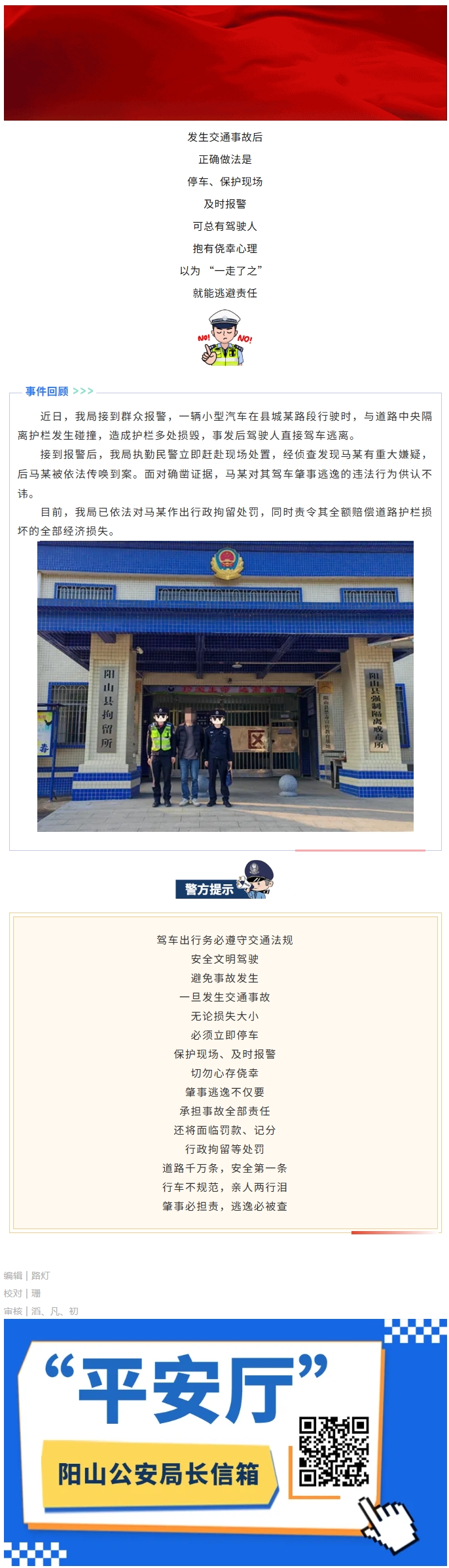 撞坏护栏还逃逸?阳山公安快速查获肇事司机