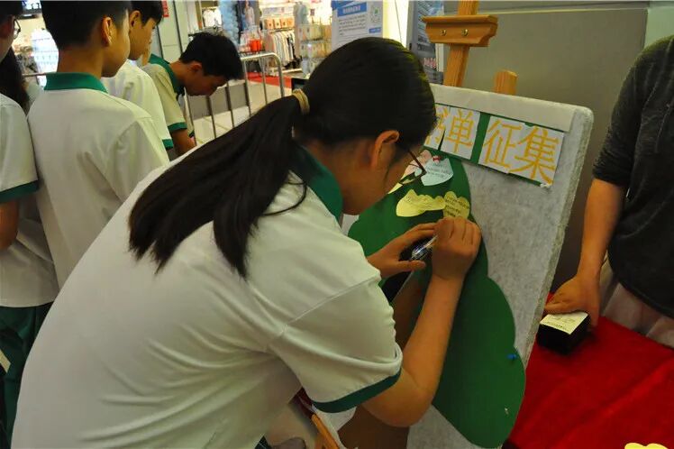 巨大的树冠背景板上,等着被贴满心愿;花是“故事花”——花盆造型的背景板,每一片花瓣都是空白的故事。路过的市民、放学的学生、带着孩子的家长纷纷在图书馆的摊位前驻足。