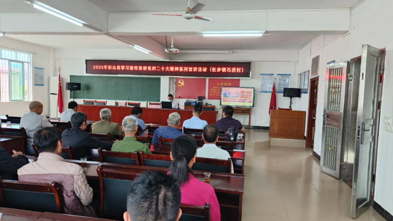 为深入学习宣传贯彻党的二十大精神,引导镇村广大党员干部群众把思想和行动统一到党的二十大精神上来,5月23日,由中共阳山县委宣传部主办的阳山县学习宣传贯彻党的二十大精神系列宣讲“六进”示范性活动(进农村)在杜步镇石溪村委会举办。活动邀请了学习贯彻党的二十大精神县委宣讲团成员唐建毅进行宣讲。