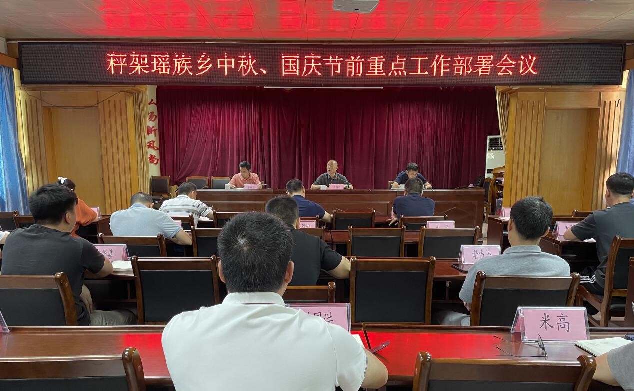 9月25日,秤架瑶族乡召开中秋、国庆节前重点工作部署会议,研究部署全乡重点工作。乡班子成员、部门负责人、驻村工作组长等参加会议。