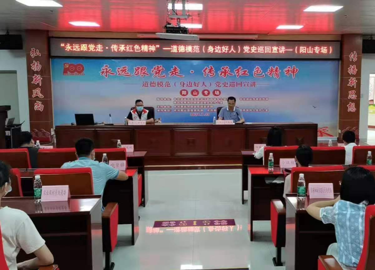 “永远跟党走·传承红色精神”——道德模范(身边好人)党史巡回宣讲(阳山专场)走进阳山县新时代文明实践中心讲堂举行。