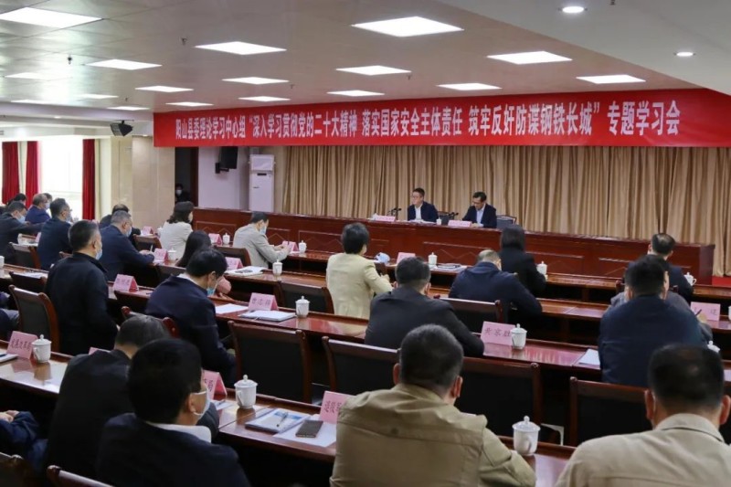 召开县委理论学习中心组专题学习。4月7日,县委召开理论学习中心组“深入学习贯彻党的二十大精神,落实国家主体责任,筑牢反奸防谍钢铁长城”专题学习会,邀请市委副秘书长、市国家安全局局长作专题授课,会议要求各乡镇各部门要全面贯彻落实中央和省委、市委关于国家安全工作的部署要求,进一步树牢总体国家安全观,扎实推进国家安全体系和能力现代化建设,为阳山县高质量发展筑牢国家安全钢铁长城。“4·15”期间,各乡镇各部门结合实际,采取理论学习中心组、党员大会、班子会议等形式,扎实开展总体国家安全观有关理论知识学习,通过宣传学习典型案例,要求全体党员干部要时刻绷紧国家安全这根弦,做到以案为鉴,居安思危,警钟长鸣。期间共开展宣传学习100多场次,4000多名党员干部参加学习。